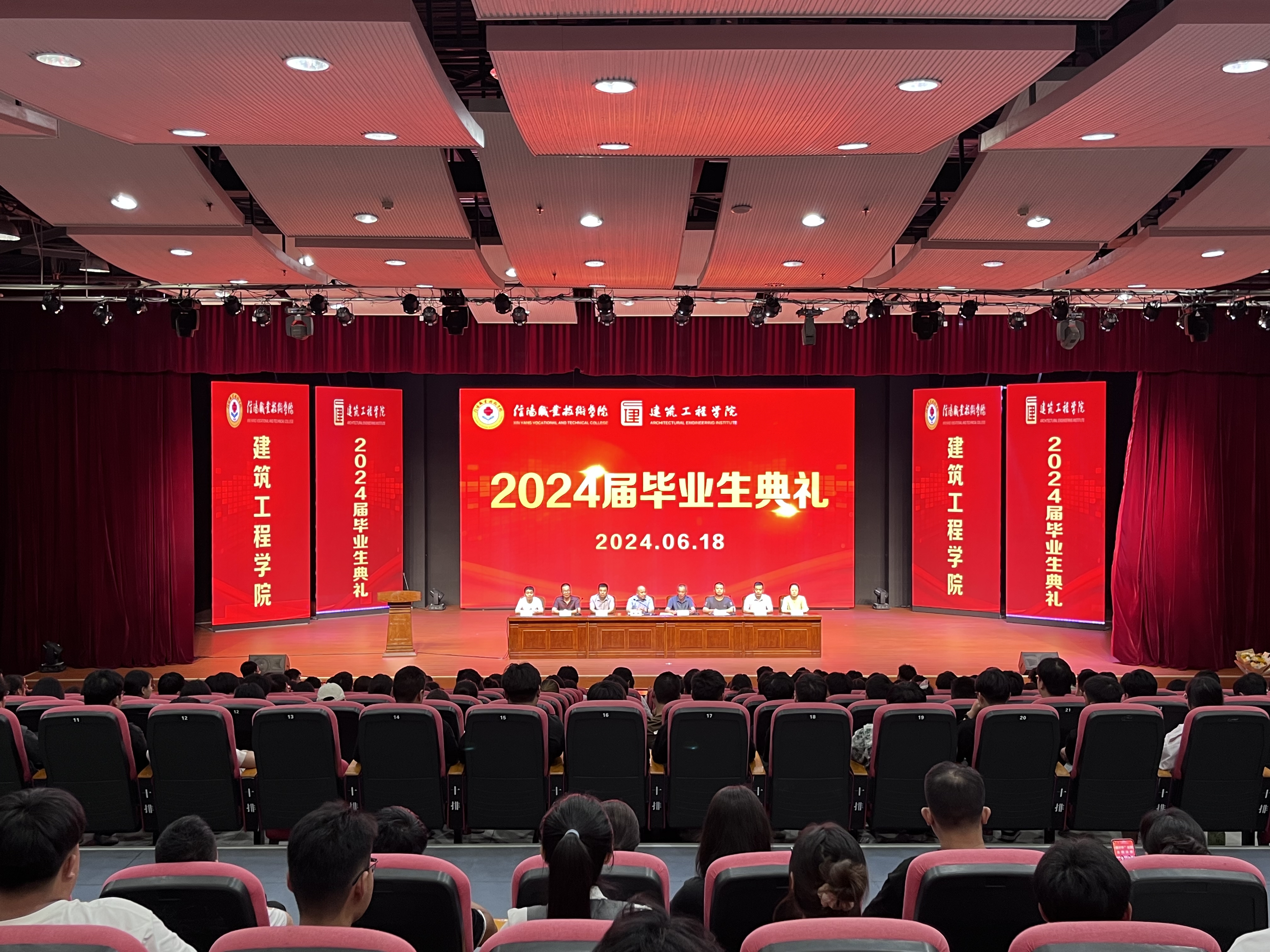 黄新向即将作别的建工专业毕业生们深情寄语。他代表学校向圆满完成学业的419名学生表示祝贺,与毕业生们一起回顾了三年来共同走过的奋斗之路,对毕业生们取得的成绩给予了充分的肯定与赞赏。他希望同学们要矢志报国,勇担时代责任,将个人理想融入国家和民族的事业中;要恪守行规,争做大国工匠,培养精益求精、追求卓越的精神品质;要与时俱进,坚持终身学习,密切关注行业动态,不断提高自身的专业能力;要团结协作,发扬集体精神,营造良好的人际关系和工作环境。最后,黄新祝愿每一位毕业生前程似锦,鹏程万里,未来可期。