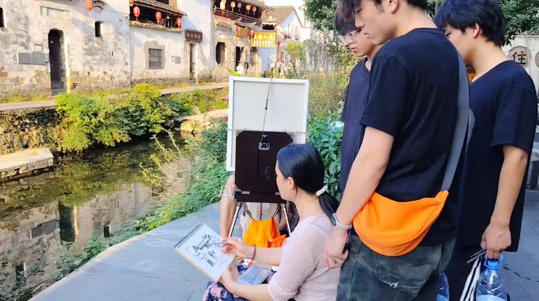 学生沉浸于传统建筑与自然景观之中,积极将课堂所学运用于实践。在教师的专业指导下,学生认真观察建筑结构、空间层次与光影变化,完成了多幅高质量写生作品。每日创作结束后,指导教师组织集中点评与专题研讨,对作品进行深入分析,助力学生在交流与反思中不断提升专业素养。