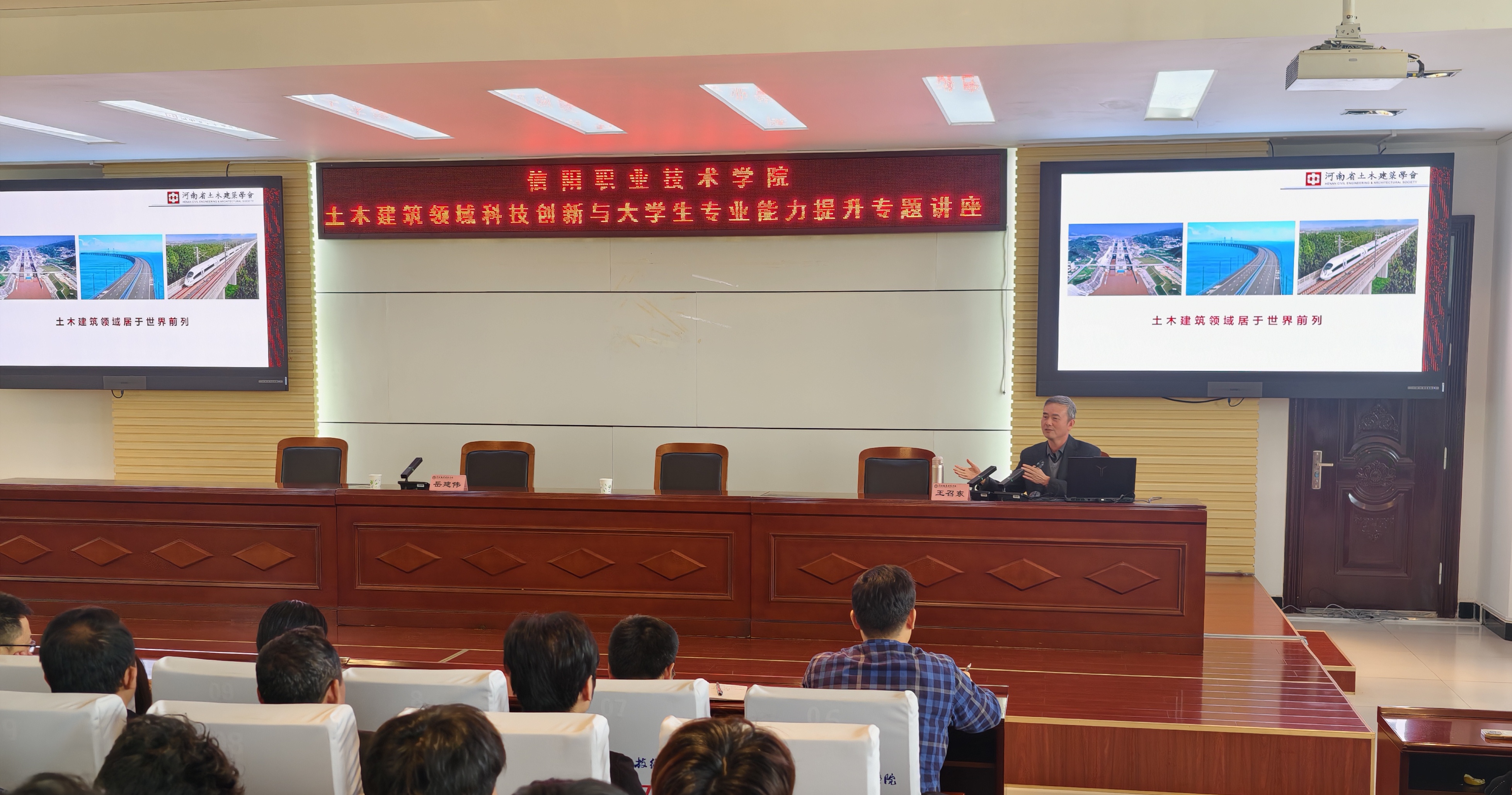 11月4日下午,河南省土木建筑学会理事长、河南城建学院原校长、住建部市政与水工业专业委员会主任委员、住建部科学技术委员会农房与村镇建设专业委员会委员、河南省历史与文化名城保护与城市设计专家委员会委员、河南省高层次人才王召东教授应邀为yl7703永利集团师生作《土木建筑领域科技创新与大学生专业能力提升》专题讲座。讲座由学院院长岳建伟主持,学院全体教师及2025级智能建造技术、建筑装饰工程技术专业280余名学生参加讲座。