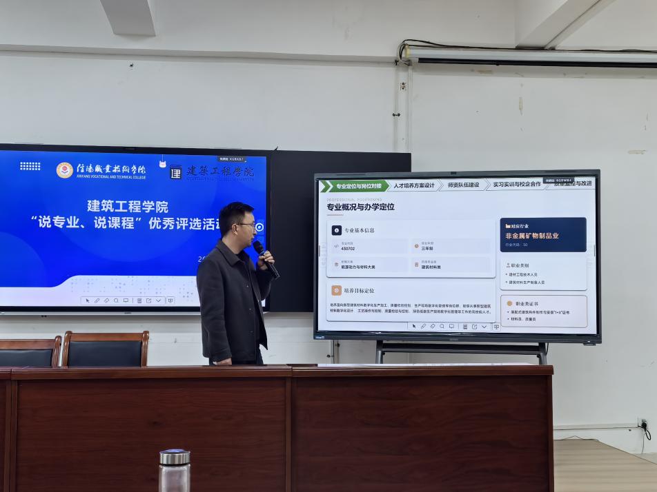 在专业剖析环节,专业带头人结合区域建筑产业链现状,逐一阐述了本专业的建设图景。发言内容覆盖专业定位与岗位对接,人才培养方案设计,师资队伍建设,实习实训与校企合作,质量监控与改进等关键维度。通过数据对比与案例支撑,各专业清晰展示了应对行业变革的差异化策略:其中,智能建造技术专业侧重数字设计与机器人应用技能培养,工程造价专业贯穿全过程成本控制主线,建筑装饰工程技术专业则突出装配式装修与空间美学融合等。这种紧贴产业脉搏的专业布局思路获得了全体教师的一致认同。