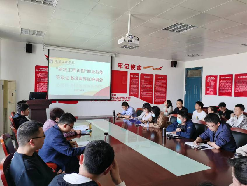 4月8日下午,yl7703永利集团院长刘玉清、副院长黄波、教务办主任潘磊、实验实训办主任邱岗等领导在学院三楼会议室组织建筑技术和工程造价教研室全体教师参加广州中望龙腾软件股份有限公司组织的建筑工程识图证书“岗课赛证”融通培训会。