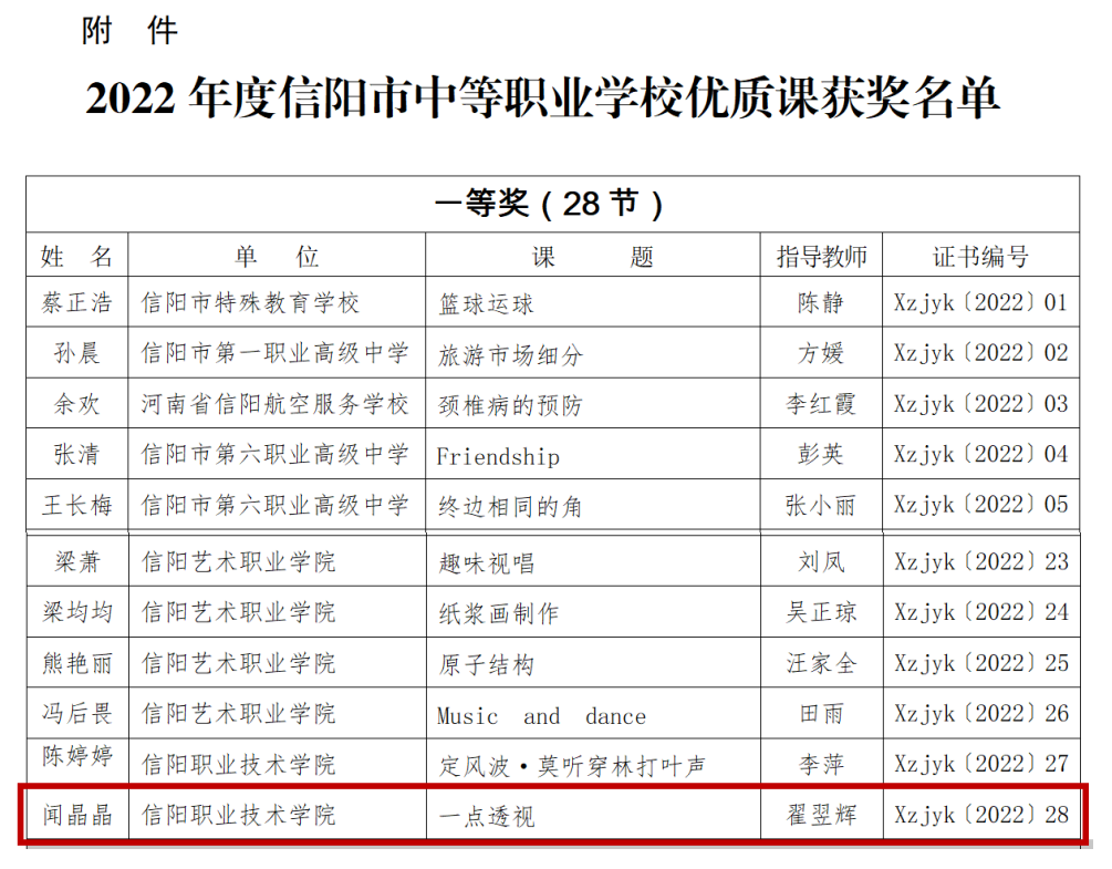 近日,由信阳市职业教育与成人教育教学研究室主办的2022年度信阳市中等职业学校优质课比赛经过初评、复评等环节,我院教师闻晶晶在该比赛中脱颖而出,荣获信阳市中等职业学校优质课一等奖。