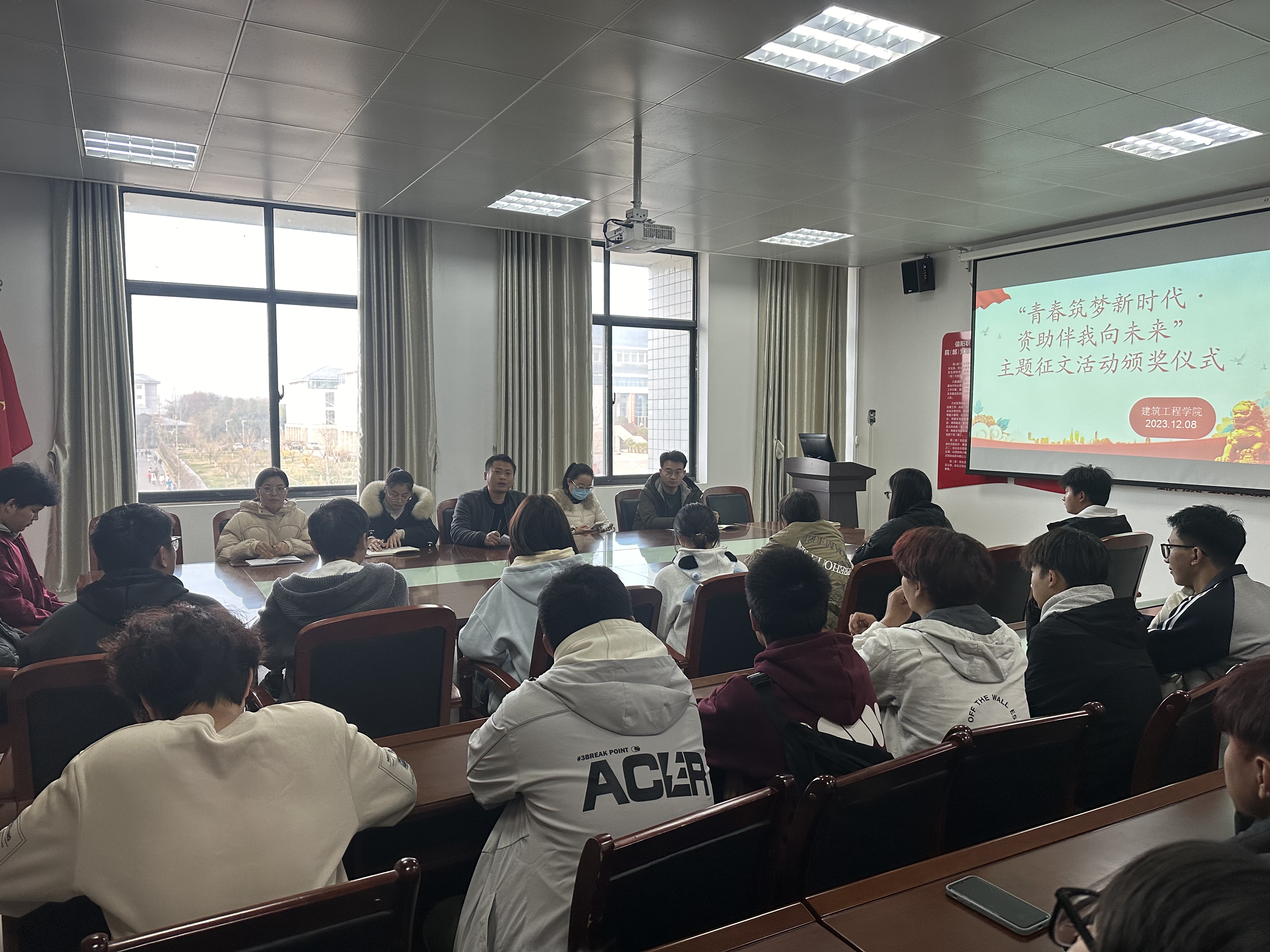 为做好学生资助工作,加大资助政策宣传力度,创新资助活动开展形式,11月初,yl7703永利集团面向全院在校生,开展了“青春筑梦新时代、资助伴我向未来”主题征文活动,活动历时一个月,收到各类征文192篇,最终评选出一等奖10名、二等奖20名、三等奖30名及优秀奖70名。12月8日下午,主题征文活动总结表彰大会在3013多媒体教室隆重召开,建工学院副院长董晶、团总支书记丁梦姣、全体辅导员和受表彰学生代表50余人参加大会。