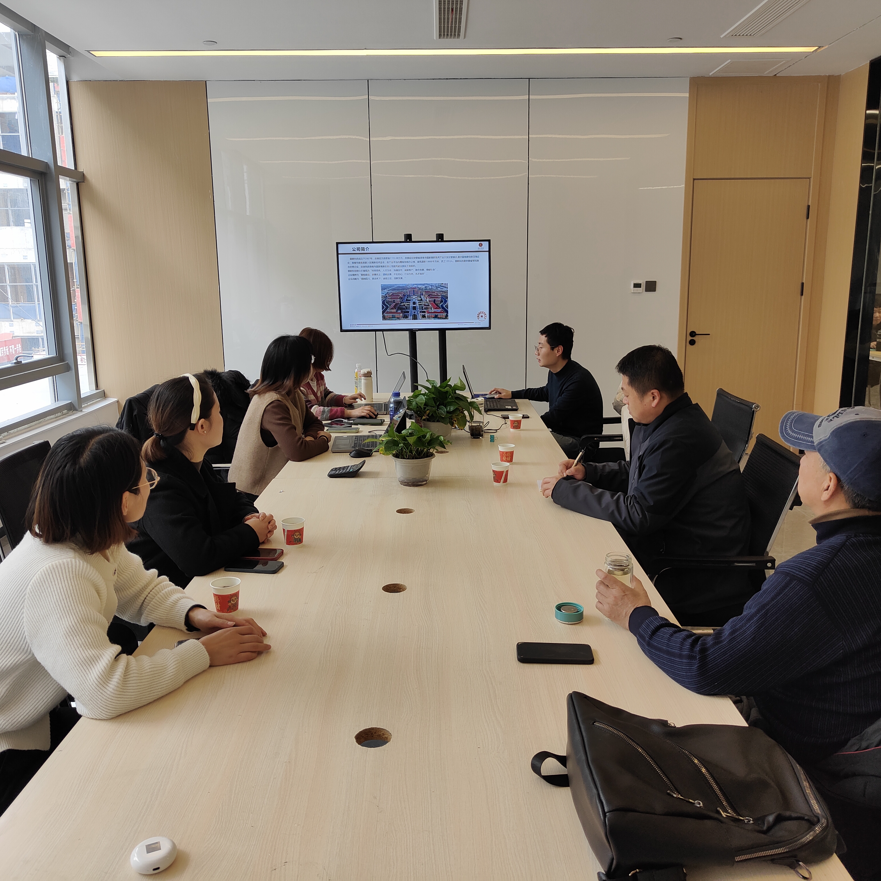 图联科技公司负责人对建工学院领导老师的到来表示了热烈欢迎,在企业会议室,公司副总做了企业PPT展示,人力资源部部长详细介绍了企业发展前景和用人岗位需求,孟昭晖结合办学历史、师资力量、人才培养模式等介绍了学校概况,并就员工待遇、工作要求、晋升通道等学生关心的问题开展座谈。通过座谈,双方表达了希望长期合作、互助互赢的意愿。