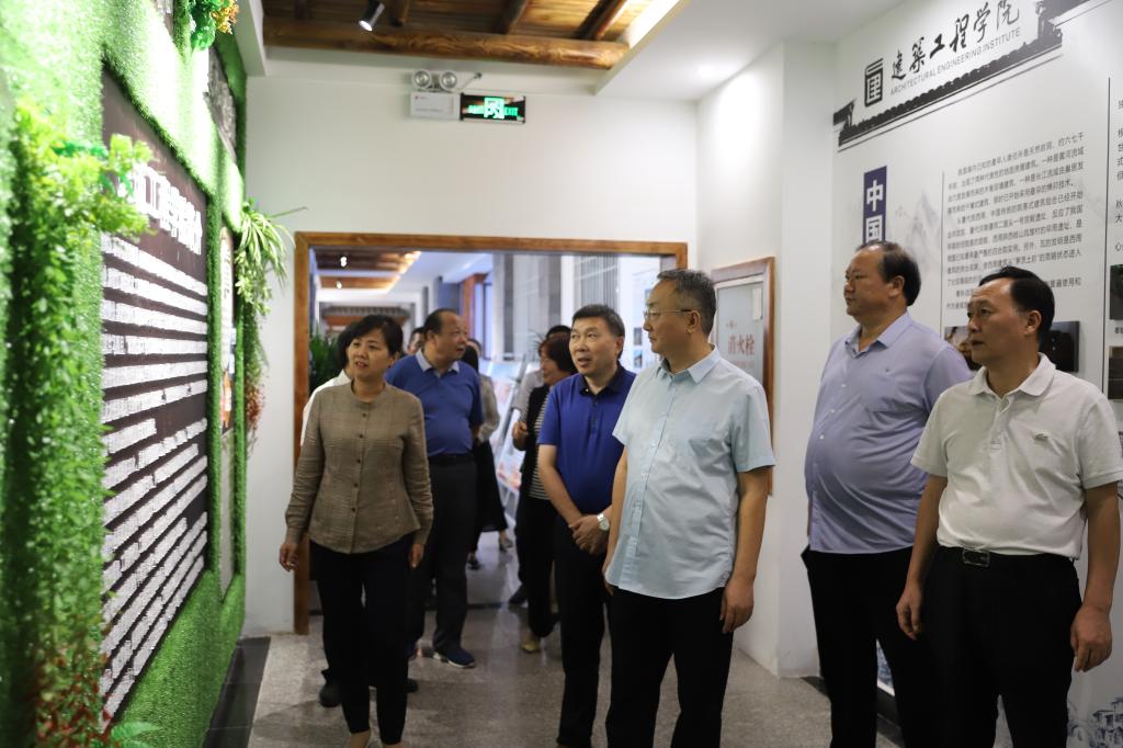 王文鹏一行参观了我院数字建筑实训中心,先后来到中国古建筑结构展厅、建筑文化长廊、建筑VR虚拟仿真实训室、豫南民居建筑展示厅等,实地查看实验实训室建设,观摩现场教学情况,对我院各项事业建设取得的成绩表示赞赏。