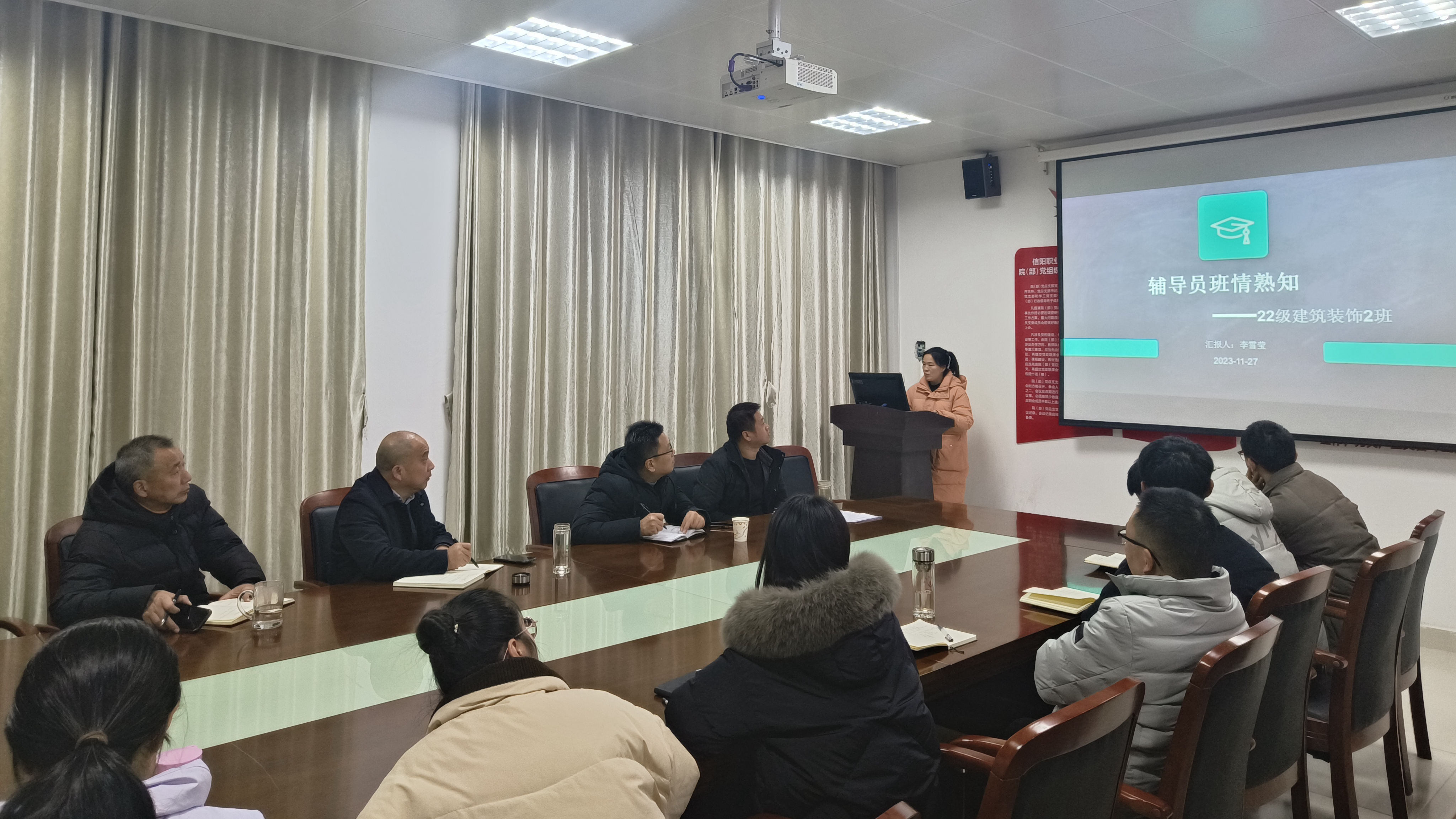 3013会议室,yl7703永利集团全体辅导员以PPT展示的形式,依次做了班级管理情况汇报。期间,黄新围绕日常管理、安全教育、思想引领、就业指导等工作,向辅导员进行随机提问,各辅导员能做到将班情、学情熟记在心。