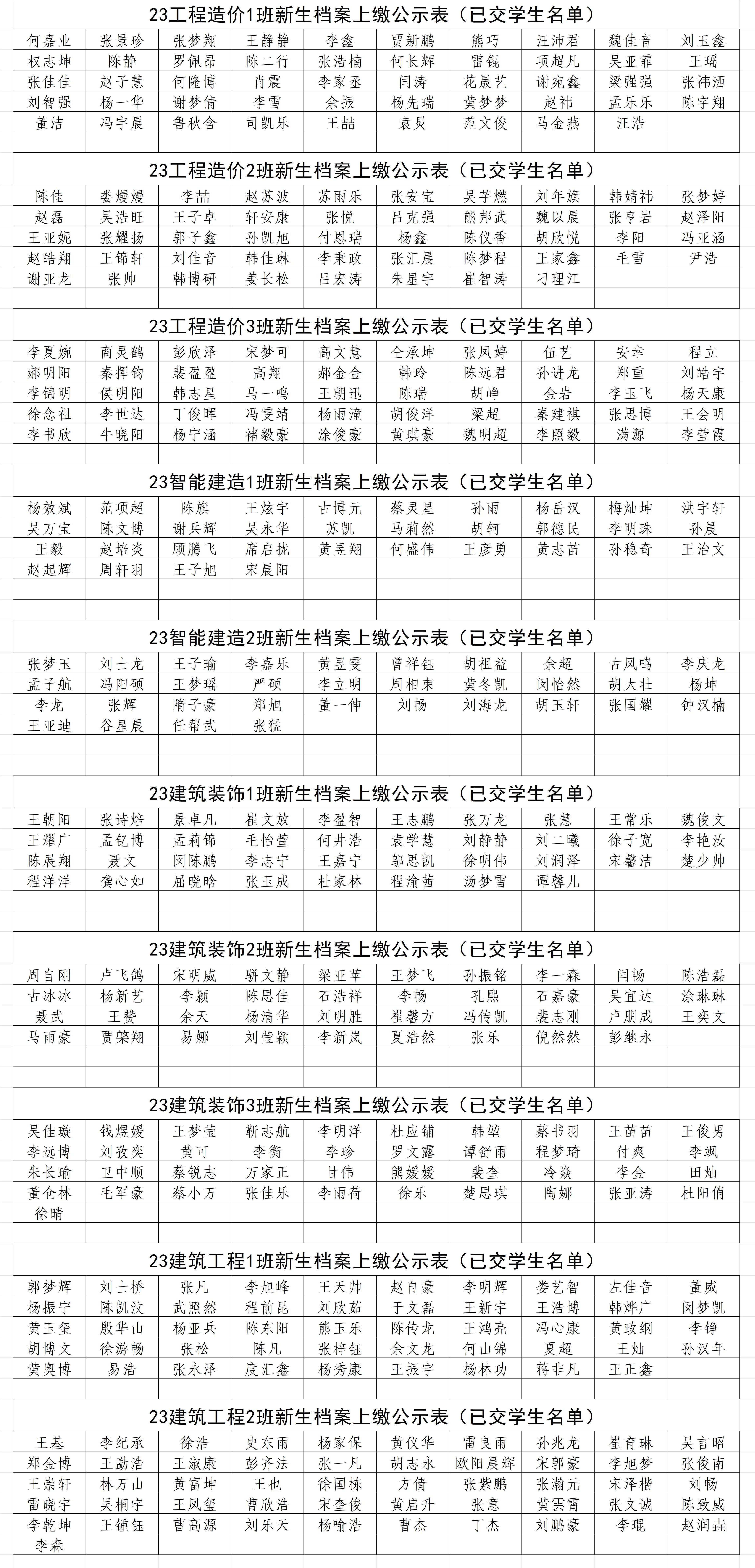 建工学院2023级普专新生档案上缴公示表