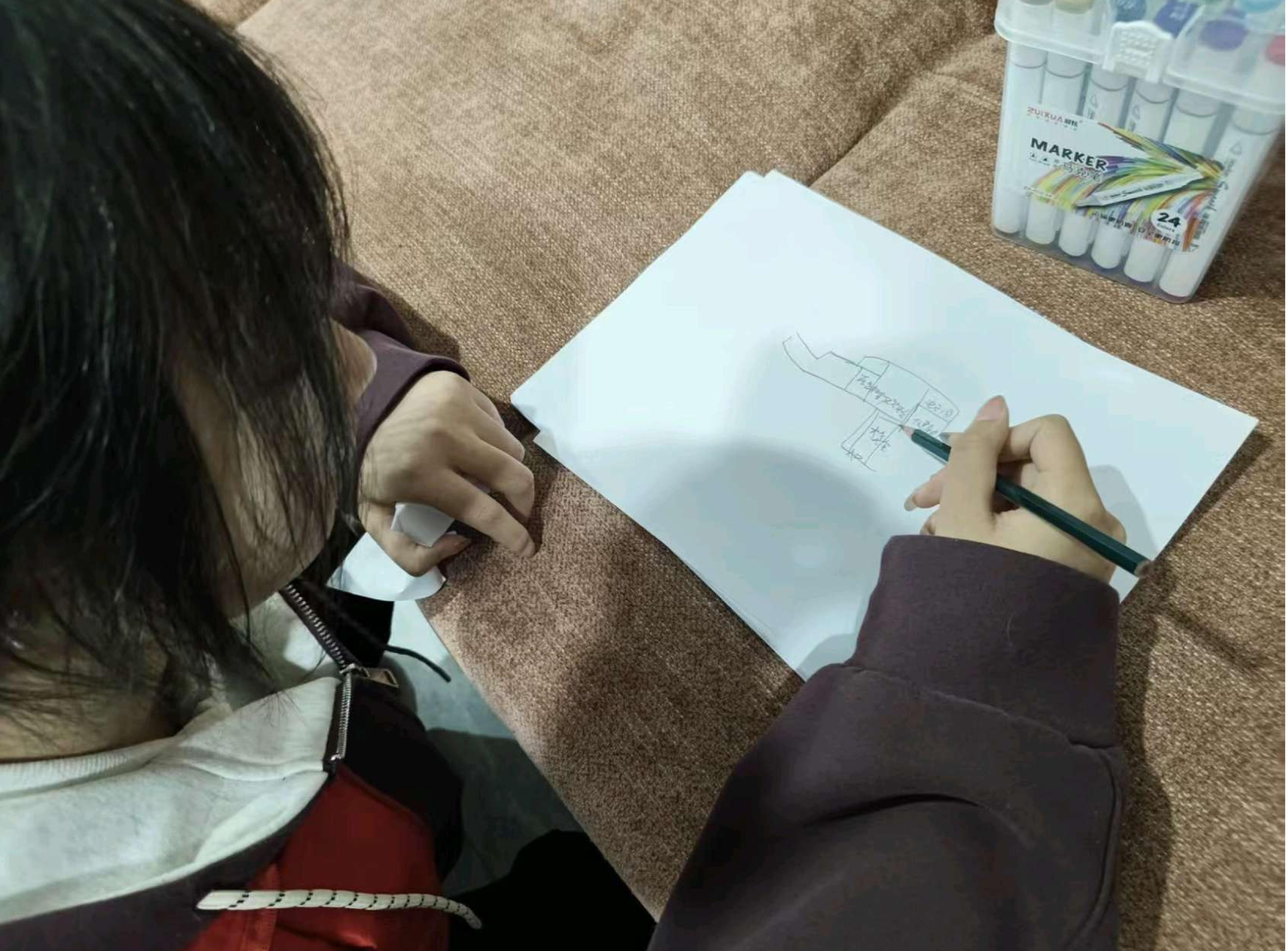此外,志愿者们还运用建筑制图专业技能,精心绘制了应急逃生路线图。图纸设计清晰明了,不仅体现了专业知识的实际应用,更展现了同学们对生命安全的深切关注与责任担当。